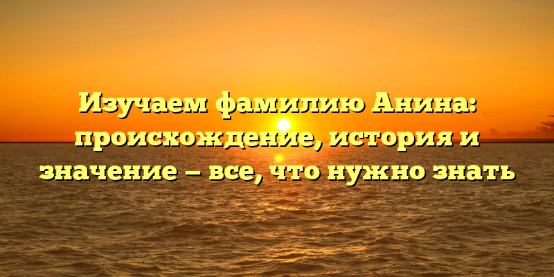 - Раскрываем тайны фамилии Анина: происхождение, история и значение — полный гид.