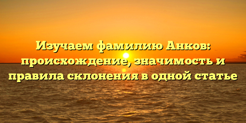 Однако, кроме происхождения, фамилия Анков имеет еще одну важную характеристику — правила склонения. Как правильно склонять фамилию Анков и почему это важно? Все это вы узнаете в этой статье.