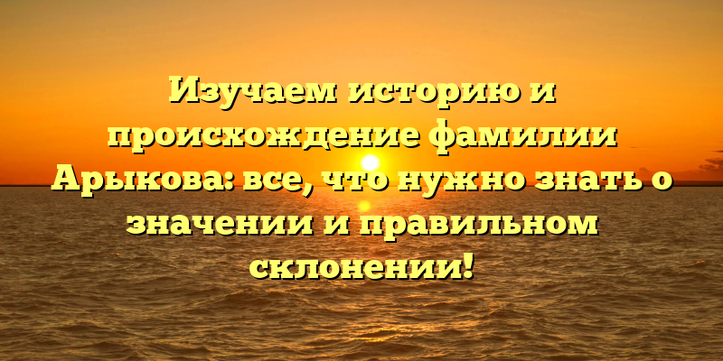 - Раскрываем тайны происхождения фамилии Арыкова: глубокое погружение в историю, значение и правила склонения