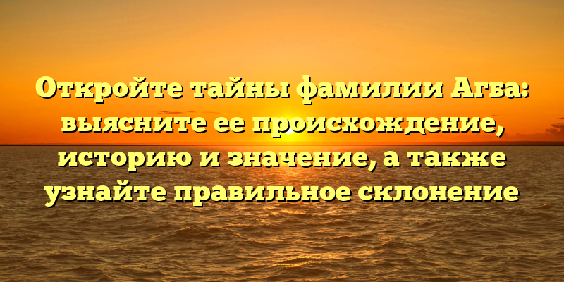 - Раскрываем тайны фамилии Агба: происхождение, история и значение, и правильное склонение – всё в одной статье!