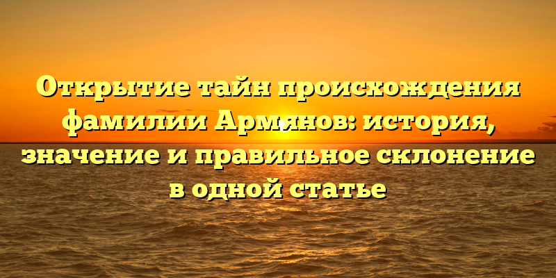 - Раскрываем тайны происхождения фамилии Армянов: история, значения и правильное склонение в одной увлекательной статье.