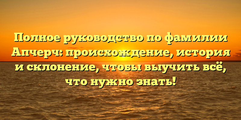 - Узнайте всё о фамилии Апчерч: история, происхождение и правильное склонение с нашим полным руководством!