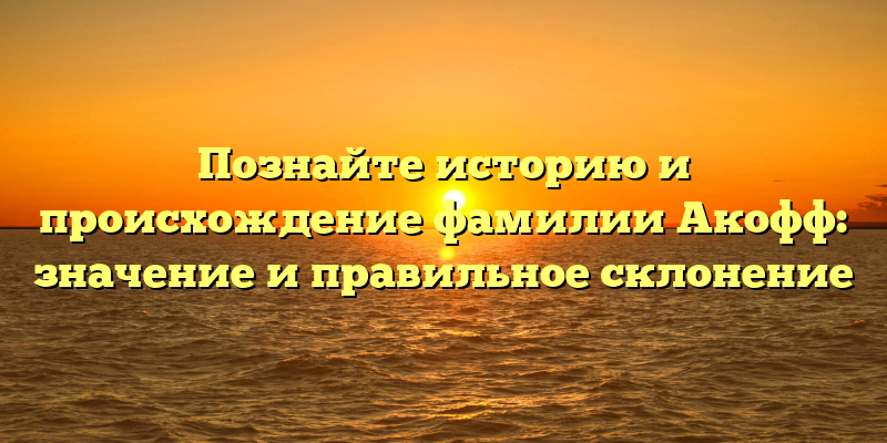 Откройте для себя происхождение и значение фамилии Акофф: все, что вы хотели знать о корнях своей семьи и правильном склонении
