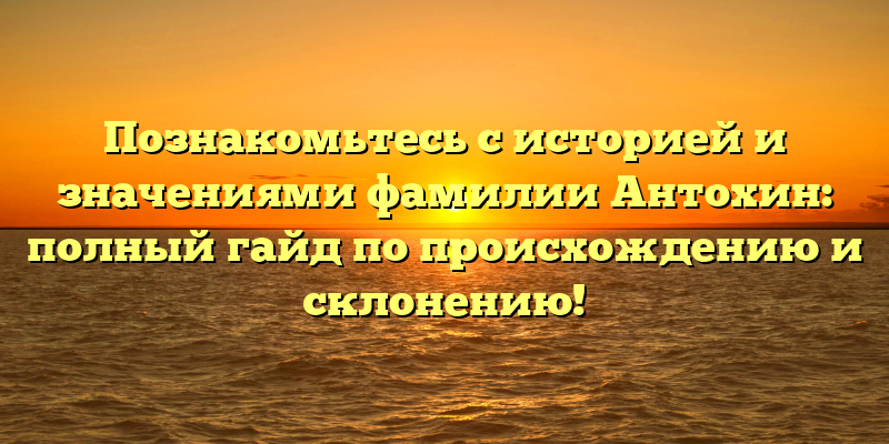 Исследуйте происхождение и значения фамилии Антохин: все, что нужно знать в полном гайде!