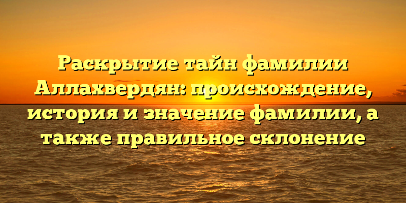 Аллахвердян: раскрываем историю, происхождение и значение фамилии, а также разбираем правильное склонение!