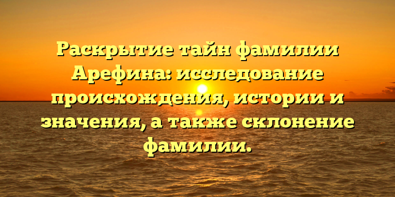 - Тайны фамилии Арефина: изучаем происхождение, историю и значение, а также правильное склонение — SEO-заголовок для статьи о фамилии Арефина.