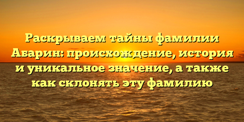 - Узнайте все о фамилии Абарин: происхождение, история и уникальное значение, а также как правильно склонять