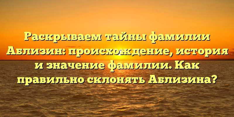 Исследование фамилии Аблизин: происхождение, ключевые моменты и правила склонения
