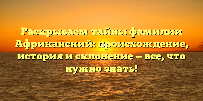 Открываем тайны фамилии Африканский: происхождение, история и склонение – глубоко погружаемся в историю этого загадочного имени!