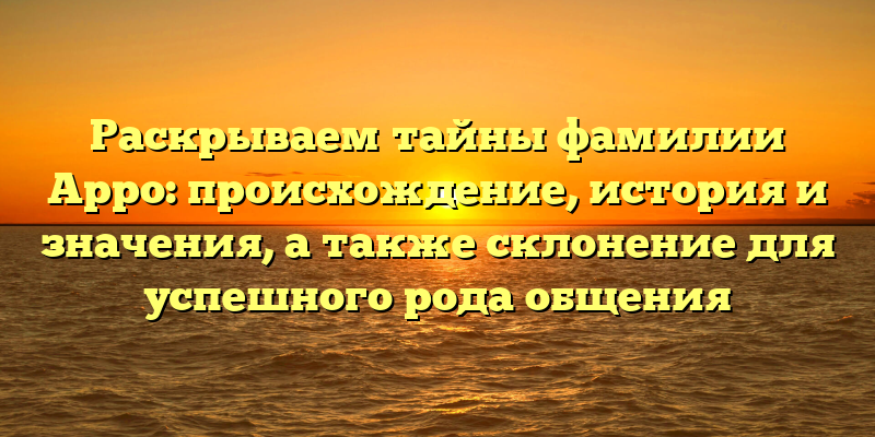 В этой статье мы проведём исследование происхождения и истории фамилии Арро, рассмотрим основные значения, которые ей приписываются, а также поговорим о правильном склонении, которое поможет вам успешно общаться с людьми, носящими это имя.