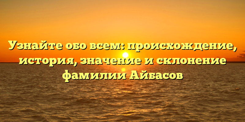 - Исследуйте истоки и значения фамилии Айбасов: полный гайд по происхождению и склонению.