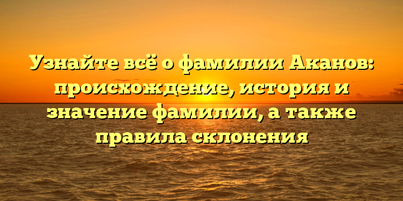 Фамилия Аканов: открытие тайн происхождения, истории и правил склонения