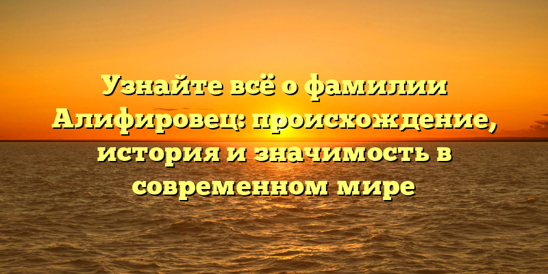 Фамилия Алифировец: происхождение, история и актуальность в наше время — ключевые слова фамилия Алифировец, происхождение, история и актуальность помогут привлечь интерес к статье, а в наше время подчеркнет, что информация полезна и актуальна для читателей.
