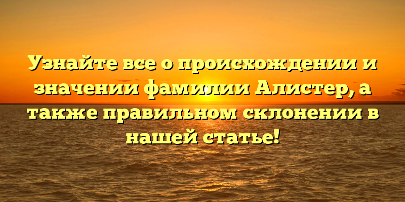 Исследуйте историю фамилии Алистер, узнайте ее значение и правильное склонение в нашей статье!