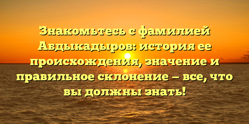 - Раскрываем секреты фамилии Абдыкадыров: история, значение и правильное склонение!