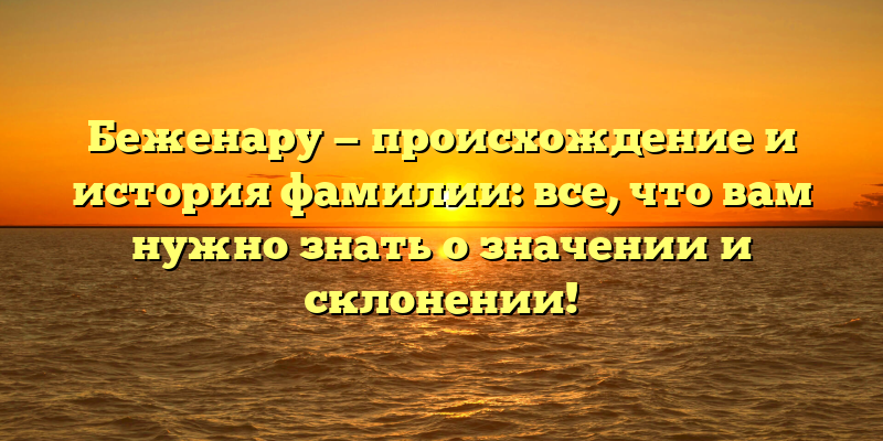 - Беженару: происхождение, история и склонение фамилии — узнайте всё, что вам нужно знать о значении твоей фамилии!
