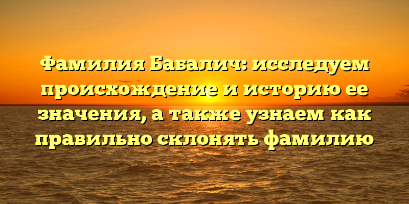 - Происхождение и история фамилии Бабалич: правильное склонение и интересные факты!