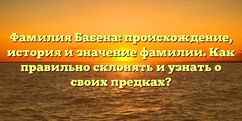 - Фамилия Бабена: исследуем происхождение и значение фамилии, а также узнаем, как правильно склонять и отыскать своих предков.