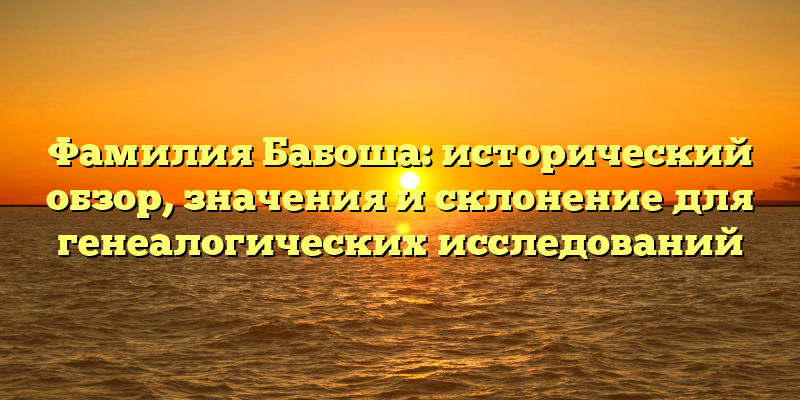 - Фамилия Бабоша: история, значения и правильное склонение для успешных генеалогических исследований