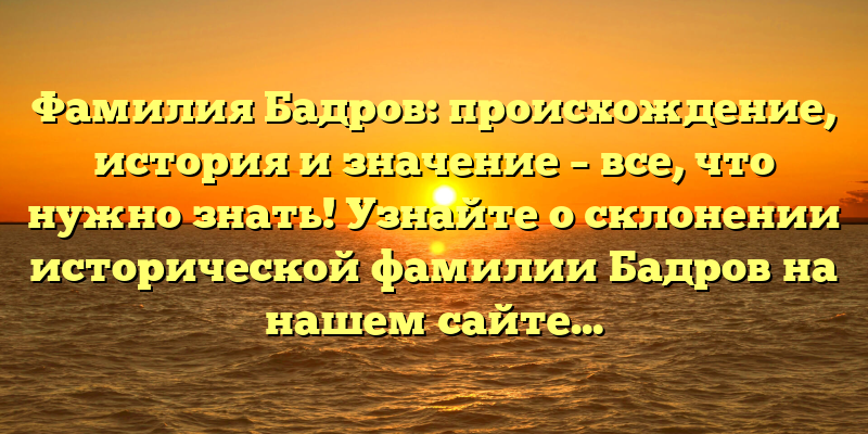 - Раскрываем тайны фамилии Бадров: история происхождения и значение в одной статье! Узнайте все о склонении этой фамилии прямо сейчас