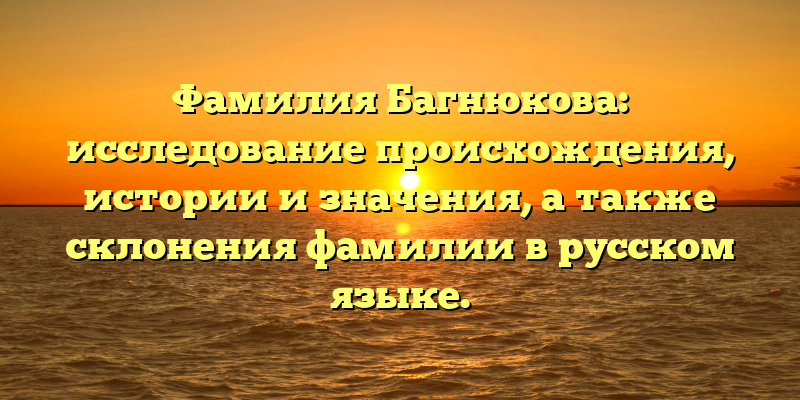 - Фамилия Багнюкова: происхождение, история и значение, а также склонение в русском языке — полное исследование