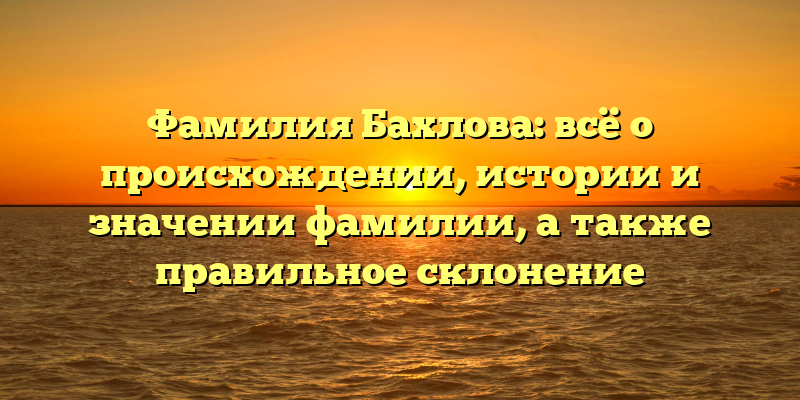- Фамилия Бахлова: происхождение, история и значение, и как правильно склонять — оптимизированный SEO-заголовок.