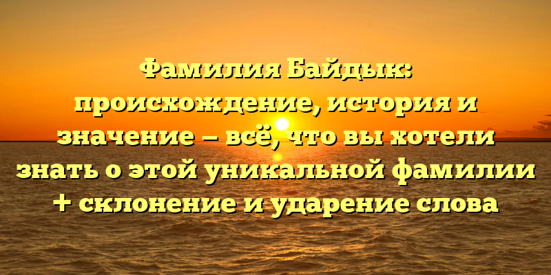 - Фамилия Байдык: происхождение, история, значение и склонение — все, что вам нужно знать о этой уникальной фамилии!
