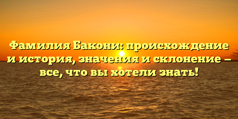 - Раскрываем тайны фамилии Бакони: история, значения и правильное склонение для уверенной коммуникации.