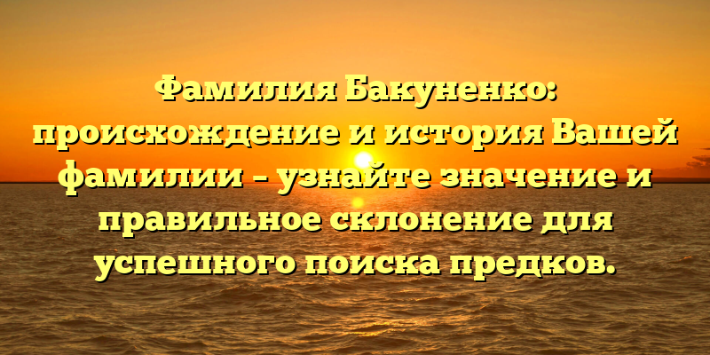 В этой статье вы узнаете о происхождении и истории фамилии Бакуненко, а также о правильном склонении и значение этого имени для успешного поиска предков.