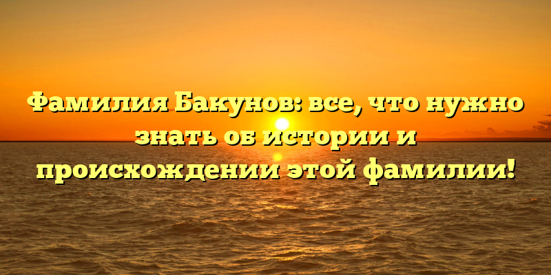 Бакунов – это одна из редких фамилий, которая имеет неоднозначное происхождение и восходит к корням разных культур и языков. В этой статье мы попробуем разобраться подробнее в этой занимательной теме и познакомимся с историей и происхождением этой фамилии.
