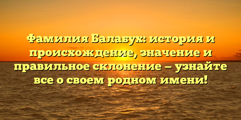 - Фамилия Балабух: происхождение, значение и правила склонения — исследуйте свои генеалогические корни.