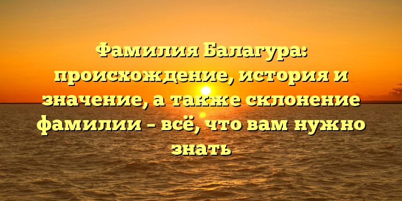 - Полное гид по фамилии Балагура: происхождение, история, значение и склонение.