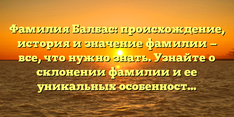 - Фамилия Балбас: происхождение, история, значение и особенности. Как склонять фамилию Балбас и что нужно знать о ее уникальности.