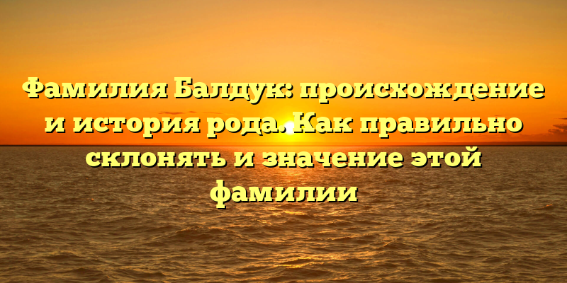 - Фамилия Балдук: происхождение, история и правильный склон рода. Узнайте значение этого редкого имени!