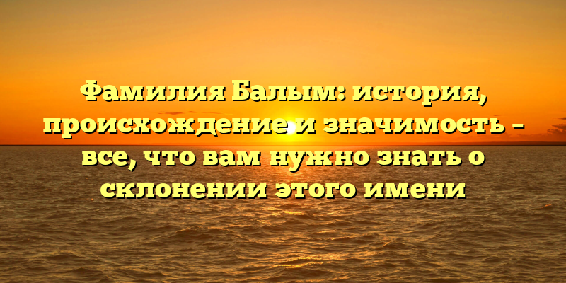 - Фамилия Балым: происхождение, история и правила склонения для полного понимания значения имени