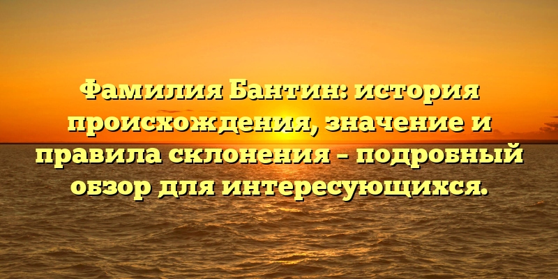 - Фамилия Бантин: подробный обзор происхождения, значения и правил склонения для всех, кто интересуется генеалогией