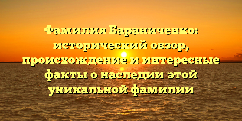 Бараниченко — фамилия, которая привлекает внимание своей звучностью и историей. В данной статье мы попытаемся раскрыть эту тему и рассмотреть разные варианты происхождения фамилии, а также интересные факты из ее наследия.