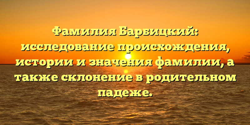 В данной статье будут рассмотрены основные факты происхождения и истории фамилии Барбицкий, а также ее значения и склонение в родительном падеже. Исходя из собранных данных, можно сделать вывод о том, что данная фамилия имеет свою уникальную историю, которая интересна для многих исследователей.