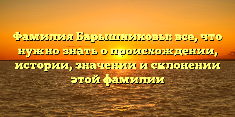 Фамилия Барышниковы имеет глубокий исторический и культурный контекст.