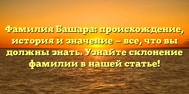 - Фамилия Башара: история, происхождение и значение — узнайте склонение в нашей статье и раскройте все тайны этого имени