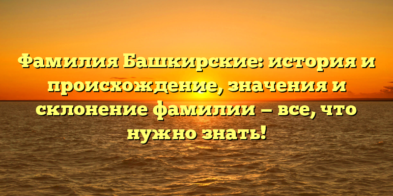 - Рассказываем об истории и происхождении фамилии Башкирские, а также о ее значениях и склонении: полный гид для любопытных и исследователей