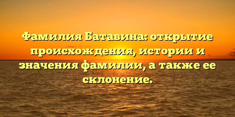 - Батавина: происхождение, история и значение фамилии, а также ее правильное склонение — все в одной статье!