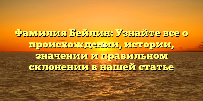 - Фамилия Бейлин: исследуем происхождение, историю и правильное склонение в одной статье