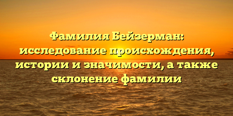 - Знакомство с историей и происхождением фамилии Бейзерман: узнайте о ее значимости и правильном склонении!