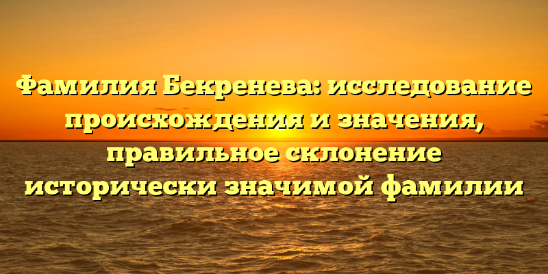 Фамилия Бекренева: происхождение, значение и правильное склонение исторически важной фамилии — главное в SEO-заголовке подчеркнуть информационную ценность статьи о происхождении фамилии Бекренева, а также ее статуса исторически значимой, что привлечет внимание потенциальных читателей. Упоминание о правильном склонении также позволит ориентироваться на статью людям, ищущим точную информацию о фамилии.