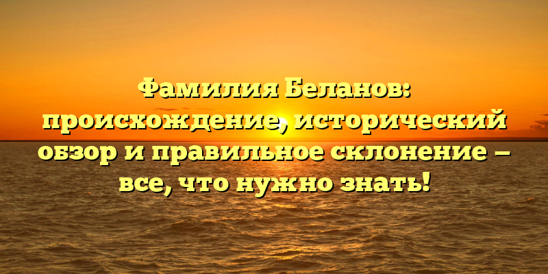 Фамилия Беланов известна многим людям, но далеко не все знают ее происхождение и историю. В этой статье мы рассмотрим все детали связанные с этой фамилией — от ее происхождения до правильного склонения.
