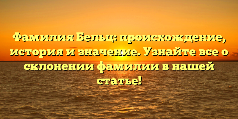 Изучаем фамилию Бельц: происхождение, история и склонение фамилии для полного знания ее значения