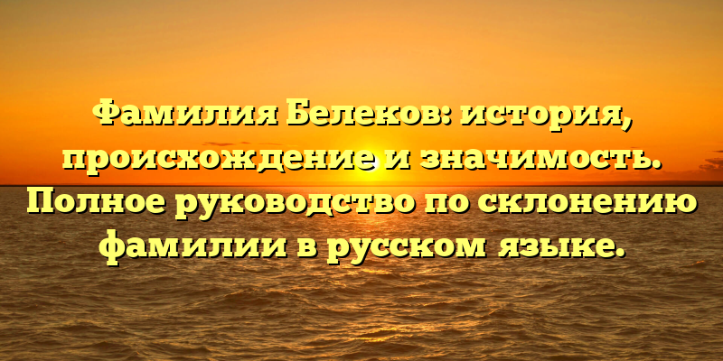 - Фамилия Белеков: происхождение, история и склонение в русском языке — все, что нужно знать