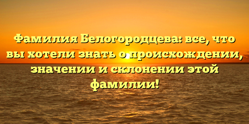 - Изучаем Фамилию Белогородцева: Происхождение, Значение и Склонение в одной статье!