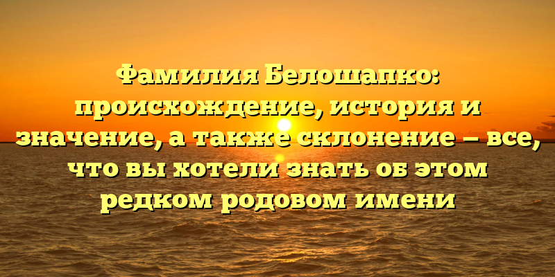 Погружаемся в историю Фамилии Белошапко: Начало, значение и склонение редкого родового имени